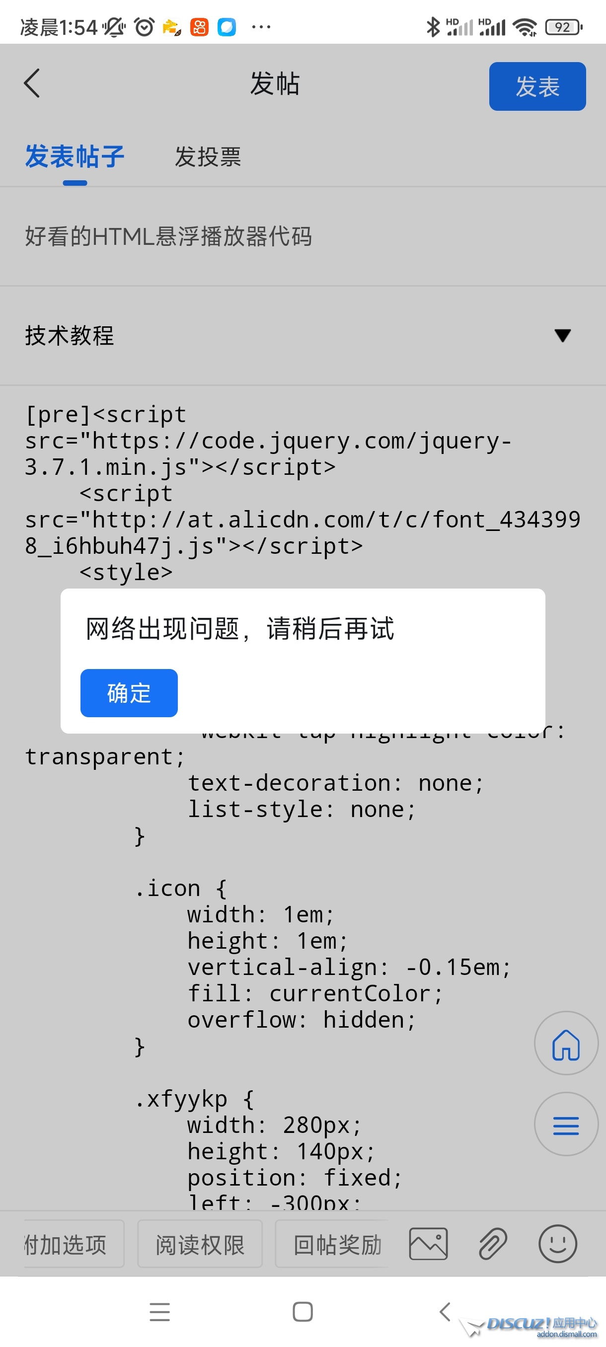 [求助] 发帖提示网络出现问题,请稍后再试 |