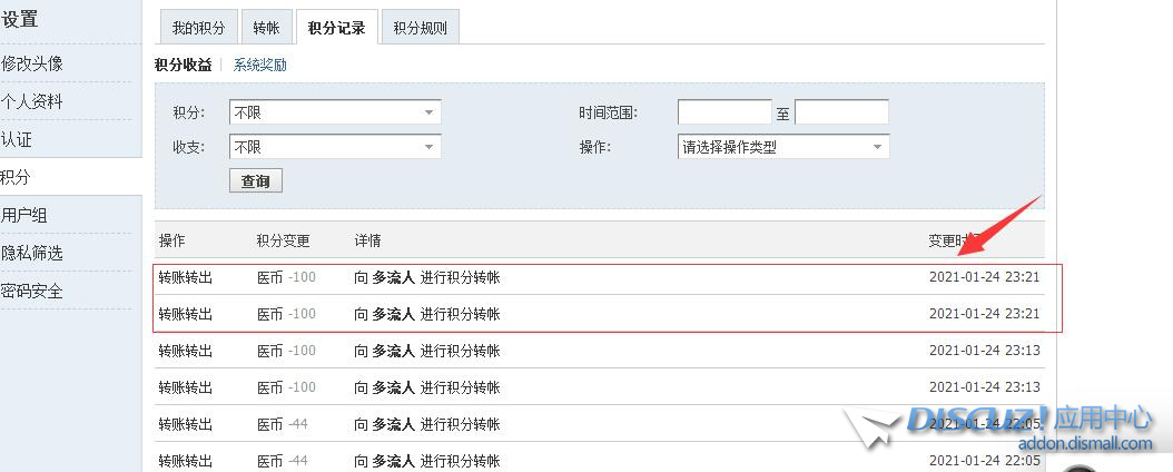 [已处理] 积分转账会重复扣积分 |