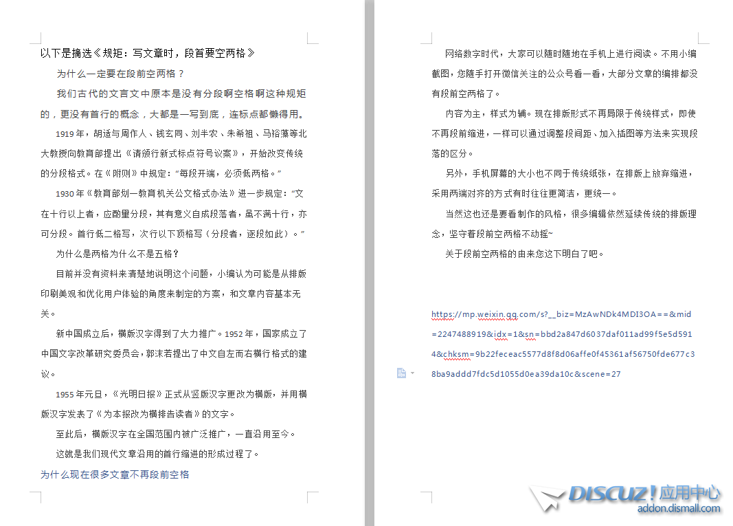 实现“段首缩进”改进帖子美观度,简单实现方法。 |