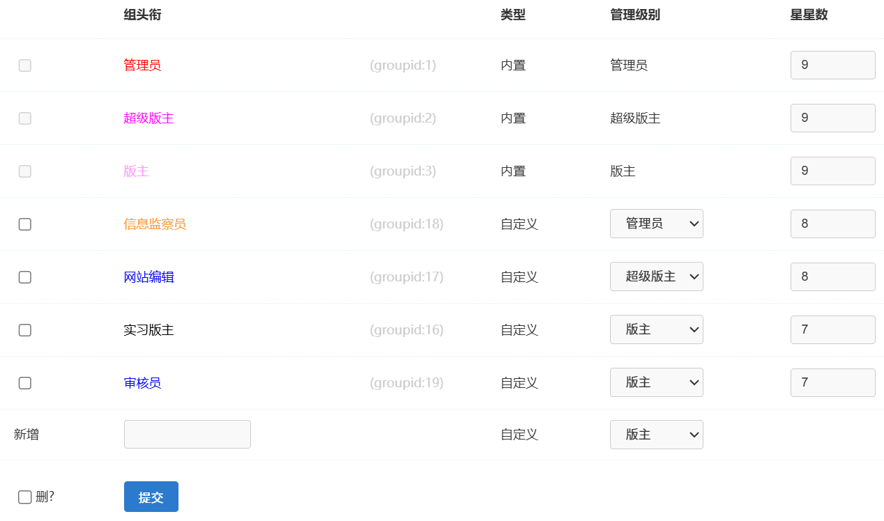 酱酱酱 发表于 2025-10-23 18:54 不太懂诶,反正就是建完论坛 修改部分功能 添加部分插件 但是修改管理员组星星数量,前台不显示 ...