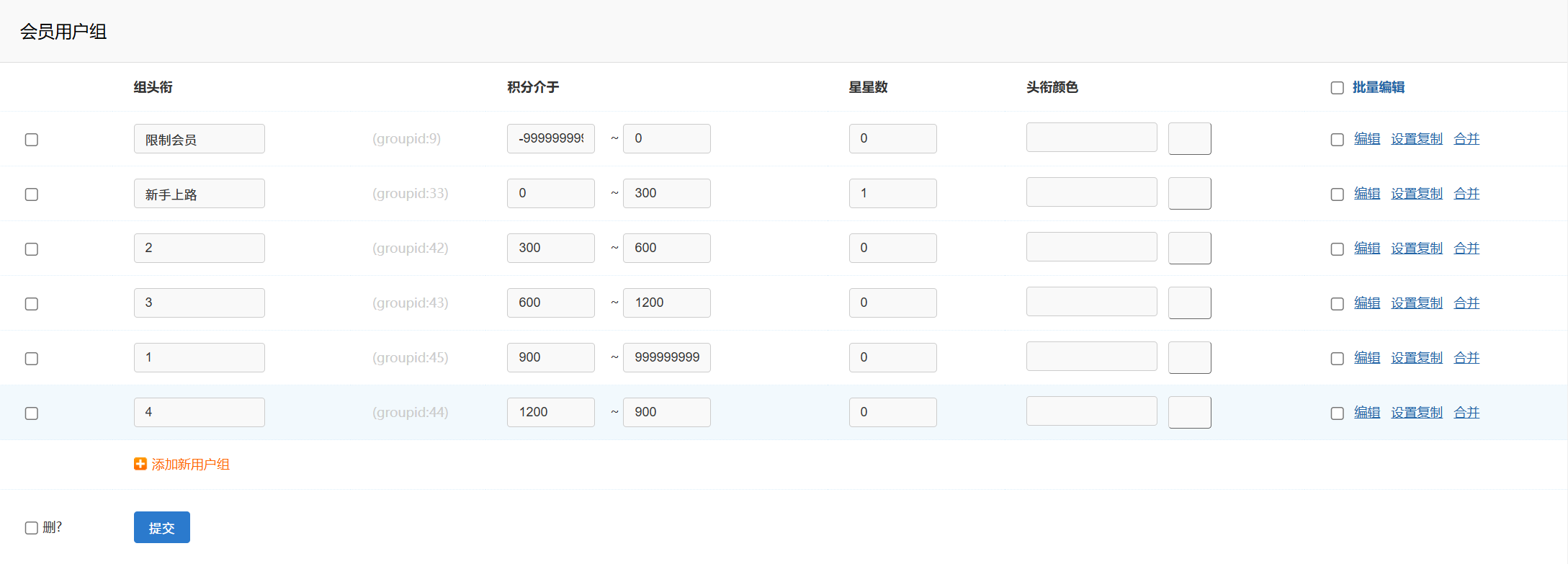 [求助] 会员用户组新增类型,积分介于怎么搞搞,总是错乱,有没有更快更便捷的办法 |