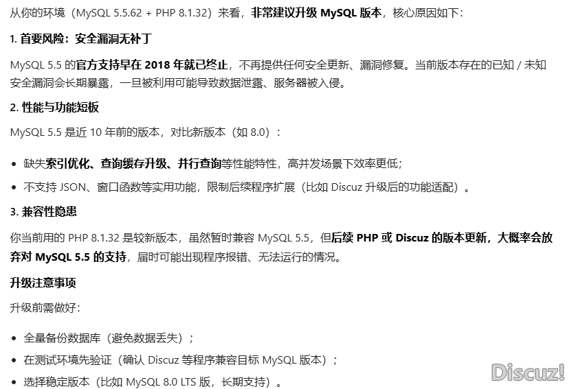 [求助] 有必要升级MySQL版本吗 |