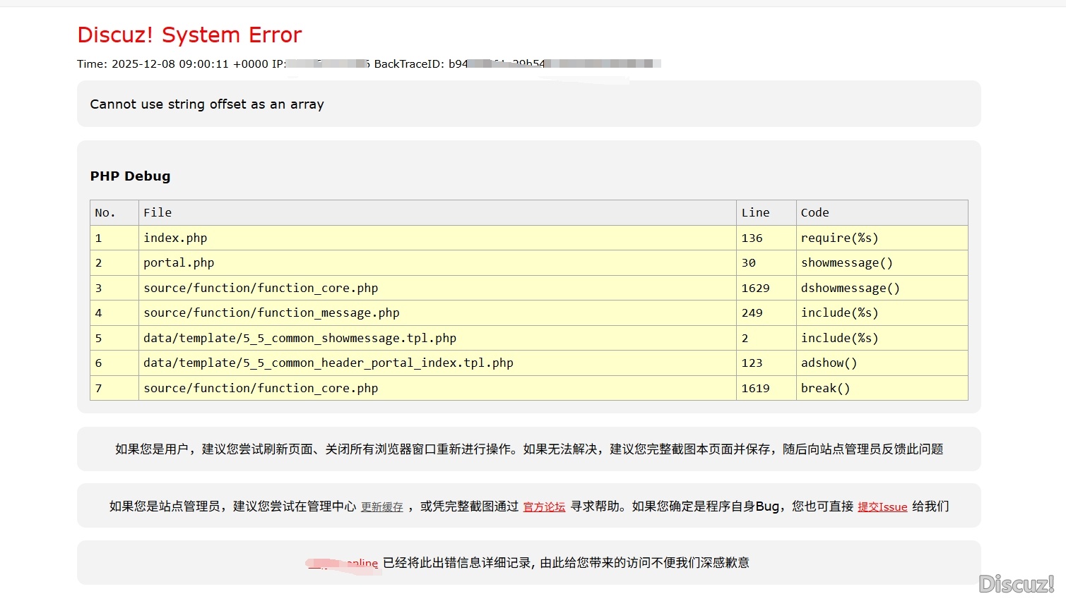 [求助] 3.4升级完X3.5后,打开网站显示:Cannot use string offset as an array |