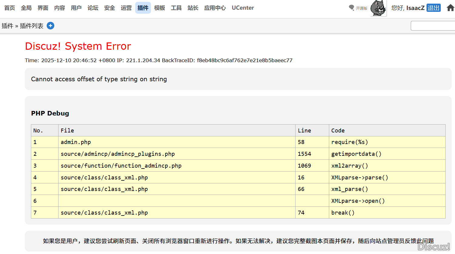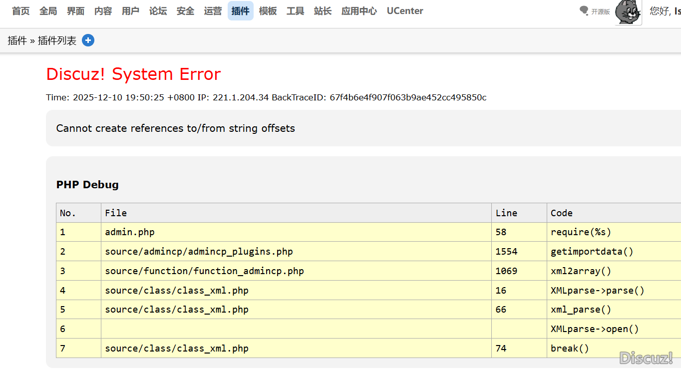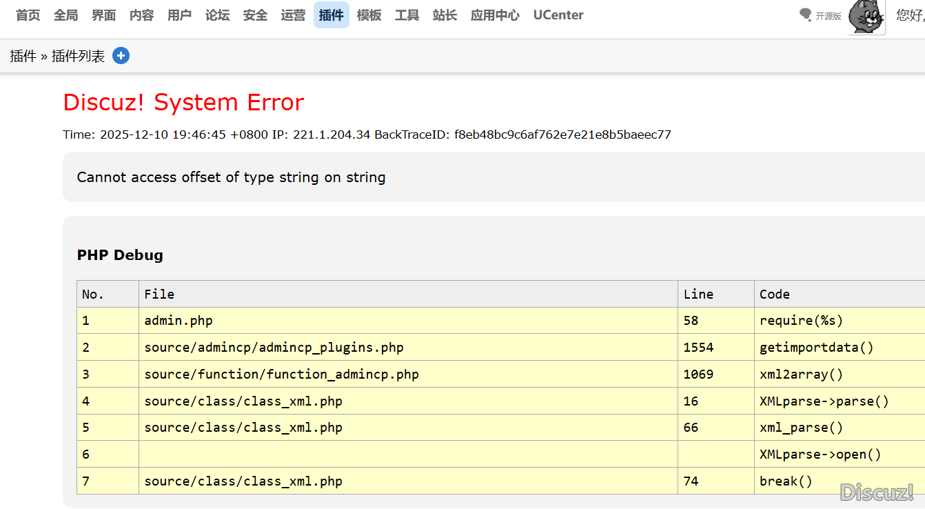 [求助] 点击插件中的“发现新版”,报错:Cannot access offset of type string on string |