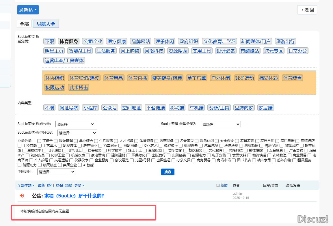 [求助] discuz 某个板块的分类信息,点击某个字段下的主题都不显示了,但是之前一直正常的,其他版块都正常。 |