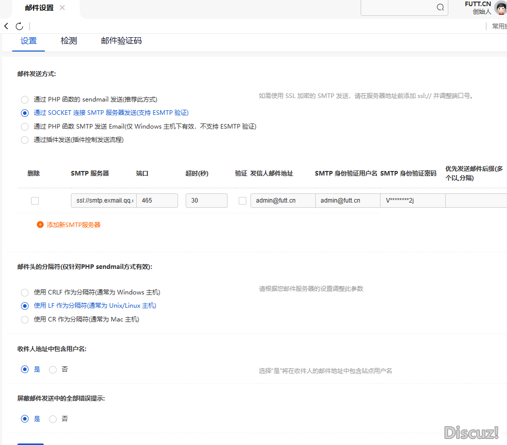 [已解决] 求Discuz x5.0邮箱设置 |